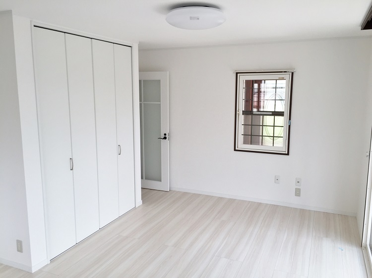 床・建具ともにホワイトカラーを選択。床材は木目が強く見えるタイプなので、白色でも木の質感hが感じれます。