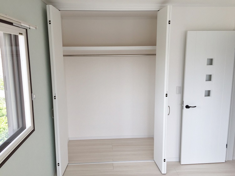 クローゼット内部です。シンプルに枕棚とハンガーパイプの組み合わせです。
