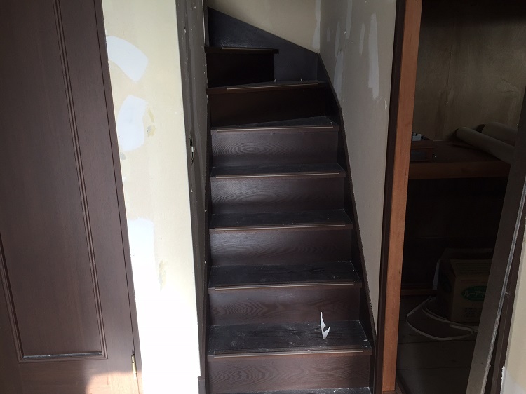 既存の階段の上から被せて施工していくリフォーム階段。踏み板と蹴込み板の色を変えることによって見えやすくオシャレな階段に早変わり!