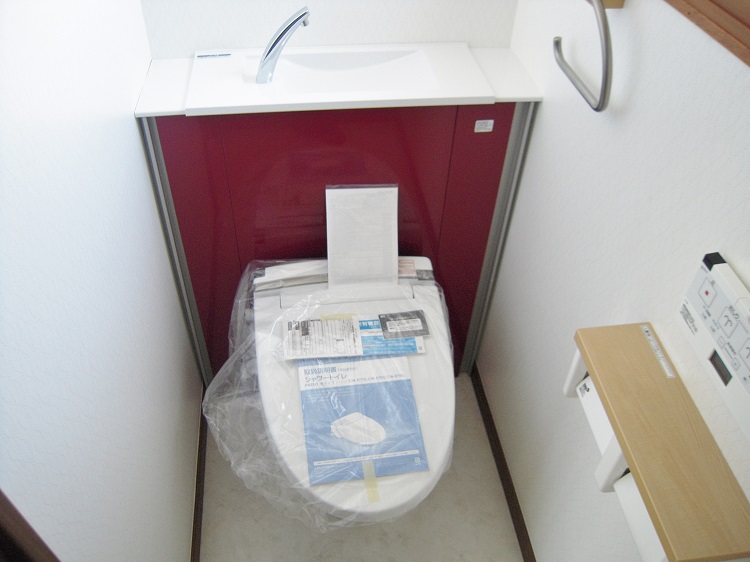 背面にキャビネットが一体となった便器です。中は収納となっているので、トイレブラシやペーパーをしまう事ができる商品です。