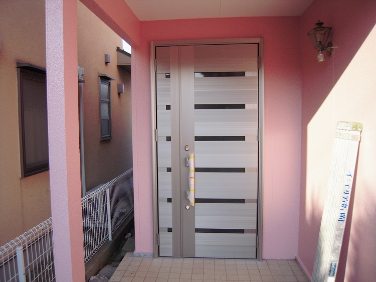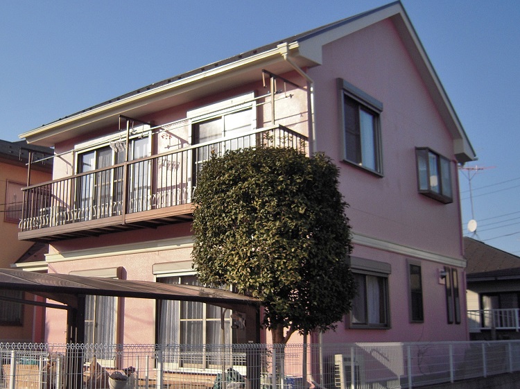 あまり見かけないかもしれませんが薄いピンクの外壁塗装です。とても明るく可愛らしい建物に変身。