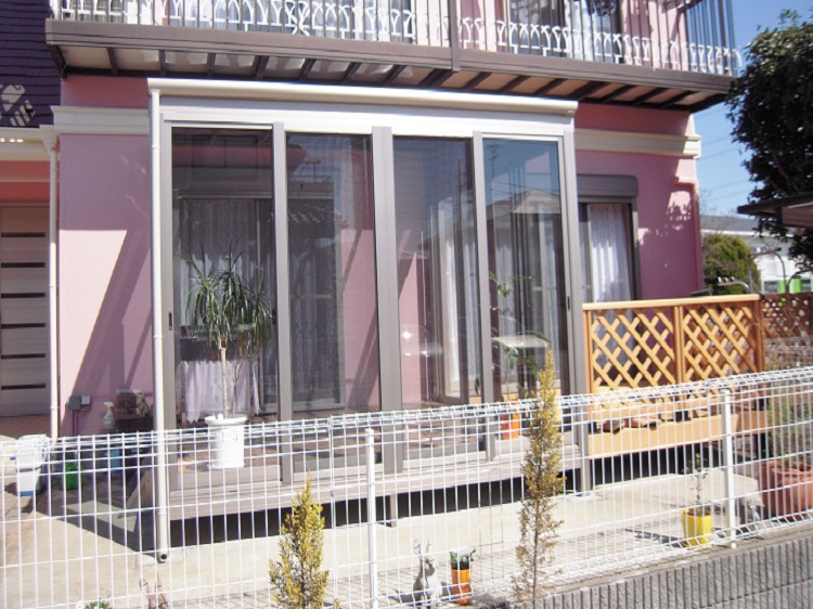 4.5帖のサンルームとその横にウッドデッキを組立ました。デッキは樹脂製なので腐食の心配がなく長持ちします!
