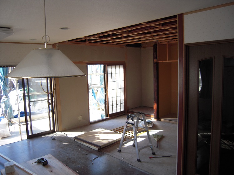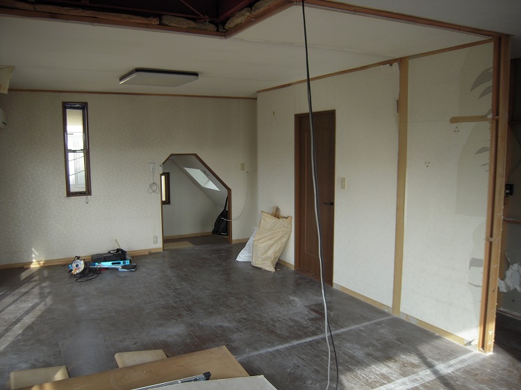 元々和室だった部屋を改装、間仕切りも撤去し大空間を作りました。ミディアム系の色でまとめた落ち着いた空間となりました。